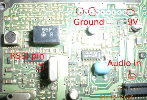 Looking at photo 3 and 4, you need to build the detector circuit and install it. You use the RSSI as the input to the detector, and you remove the Ferrite bead to break the FM audio Path (where audio in is marked on photo 3). I have left the FM part of the board running to allow the squelch circuit to keep operating, hence allowing the radio to scan as well.