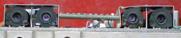 Remove the brass slugs in the 4 front end inductors. Chop 2 of the ferrite slugs in half, I used side cutters and it worked, and screw them mid way into the inductors. See photo 4.