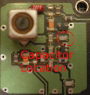 The VCO needs extra capacitance added to allow it to operate on the Airband. Have a close look at the RX VCO. There is a small chip cap mounted where the vacant pads are located in the E band version. On the receive VCO place a 5.6pF smd cap across this cap. See photo 1.