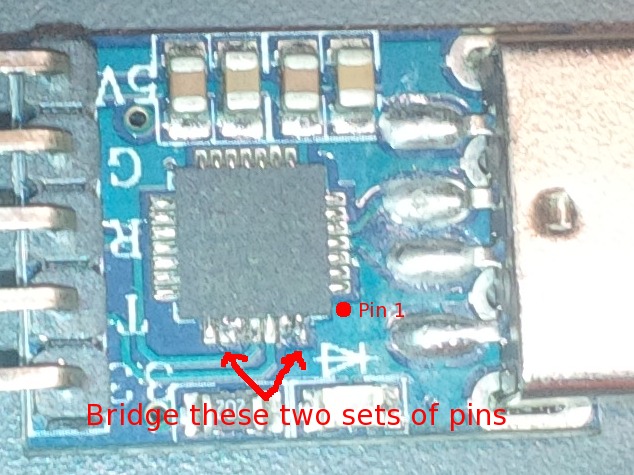 This Documentation has been written about the Deal Extreme CP2102 converter P/N 152317. Other CP2102 units should work but you have to work it out for yourself.