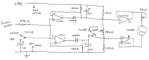 All I have done here is use an op amp as a comparitor and compare a reference voltage to the discrim voltage and show the difference on a meter movement. This is similar to a TODF fox hunting antenna I was reading about (The comparitor bit…).